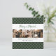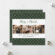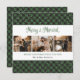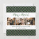Elegant green plaid photo merry and married Christmas cards featuring a snowy black and green buffalo plaid background with 3 photos in the middle and a beautiful hand-lettered script title above. Easily personalise this green plaid Christmas card with your images, text, and your family name.