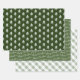 Modern christmas wrapping paper featuring a forest green with xmas trees, festive green with the seasons greetings "merry christmas", and a white & sage plaid pattern sheet.