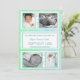 Upload four of your own photos to the front of this contemporary green plaid print new arrival announcement and customise the text with your baby's information. If your uploaded photographs do not fit to your preference please be sure to use the: "Edit this in our design tool now" link! This design can also be customised as a baby shower or christening invitation!