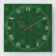 Green Plaid Square Roman Numerals Clock
