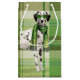 A fashionable Dalmatian dog is dressed in a green scarf and cool sunglasses makes a cute impression and a fashion statement which is paired with a green plaid pattern in shades of green suitable for any gender or age.