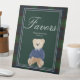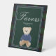 Green plaid teddy bear baby shower favour table pedestal sign