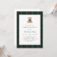 Green plaid patterned Christmas card with a cute teddy bear illustration.