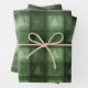 Green Plaid With Fir Tree Motifs Christmas Pattern Wrapping Paper Sheet