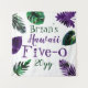 Celebrate a special 50th birthday with a Hawaii 5-0 party drape. Beautiful green and plum purple tropical leaves surround your personalised fiftieth birthday wording. Monstera leaves, ferns, and other island leaves with gold text is perfect for 50th birthday tapestries and banners.