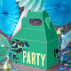 This tropical party giftbox features a green poison dart frog