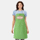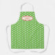 Green, red and white polka dot and star ribbon apron in shades with a decorative area for your name and job role in between a red star. Currently reads Our star Cake baker Estelle. An ideal gift for a baker or person who loves to cook, or for a business that bakes or makes chocolates, sweet treats, and candy. Other matching items are available. Original graphic art and design by www.mylittleeden.com