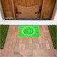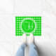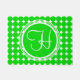 Green dots in close quarters create a secondary pattern of white stars. A large green circle is surrounded by white lines, while a single white initial graces the centre.