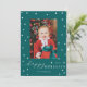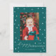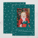 This customisable holiday photo card features a festive, and traditional dark forest green background and a border of white star pompoms and a chic happy holidays greeting surrounding a single photo for an upscale, luxe feel.