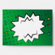 Pun pop art envelope in bright green with a white burst for the address. Speech bubble on the back flap for the return address.