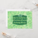 Painting of a green present topped with a green and white striped bow, on an abstract patterned background of yellow, green, and white, is printed on custom invitations. The text can be easily customised for a Christmas present exchange party, and can also be customised differently, or deleted.
