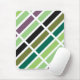 Geometric linear, rectangle, striped pattern of black, purple and green hues.