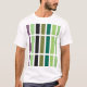 Geometric linear, rectangle, striped pattern of black, purple and green hues.
