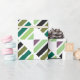 Geometric linear, rectangle, striped pattern of black, purple and green hues.