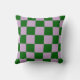 A bold green and light purple checkerboard pillow with a playful geometric style. Perfect for modern decor.