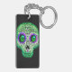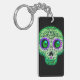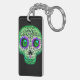 Green & Purple Glowing Sugar Skull Black Halloween Key Ring