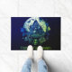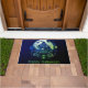 Step into a world of spooktacular welcome with our Halloween-themed doormat! This bewitching doormat features a captivating image of a green and purple haunted house, standing tall against a backdrop of a massive full moon. The haunted scene is adorned with hauntingly beautiful purple leaves, enchanting roses, fluttering butterflies, and a chilling skull, setting the stage for a Halloween adventure right at your doorstep.