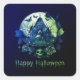 Green Purple Gothic Haunted House Happy Halloween Square Sticker
