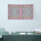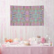 Colourful geometric shapes pattern, custom made artwork in prominent shades of green, purple, pink, blue and with additional shades of brown, grey, yellow, red, orange, gold. Elegant trendy digital art design.