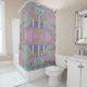 Colourful geometric shapes pattern, custom made artwork in prominent shades of green, purple, pink, blue and with additional shades of brown, grey, yellow, red, orange, gold. Elegant trendy digital art design.
