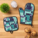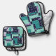 Green Purple Pot Holders and Oven Mitts Abstract Oven Mitt & Pot Holder Set