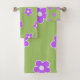 Green Purple Retro Y2K Flower Pattern Bath Towel Set