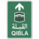 Guide worshippers with this sturdy Green Qibla Direction Sign. Featuring a Kaaba icon, an upward arrow, and bilingual "Qibla" text in Arabic and English on a green background, this durable sign is perfect for mosques, homes, and prayer rooms. Ideal for indoor use to indicate the direction of Mecca.