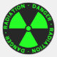 Danger - Radiation - bold green lettering and radiation symbol on a black background.
