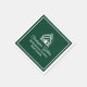 This professional realtor paper napkin is custom made with your real estate company name under the modern cursive script for an open house. This chic green realty business party decor features a house logo image for home builder or realty agent company marketing.