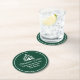 This professional realtor paper coaster is custom made with your real estate company name under the modern cursive script for an open house. This chic green realty business party decor features a house logo image for home builder or realty agent company marketing.