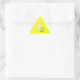 An iconic recycle symbol on a bright yellow background being held by a modern man illustration. Perfect sticker for labelling your recycling bins.
