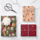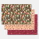 Green Red and Pink Christmas Forest Village Wrapping Paper Sheet
