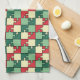 Green Red Geometric Puzzle Pieces Pattern Tea Towel