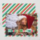 Dog themed Merry Christmas photo card with stripes in red and different shades of green and white along with Merry Woofmas written across a photo of your dog in a retro groovy font in red and green. Groovy Merry Woofmas Christmas card for you and your dog(s) to wish your friends and family Merry Christmas during the holidays with this retro inspired dog themed photo Christmas card with festive diagonal stripes and fun colours with a groovy font and cute paw prints. A funny dog-themed Christmas card with the pun Merry Woofmas in a retro font personalised with a photo of your dog. Wish friends and family a Merry Woofmas from you and your fur babies.