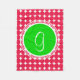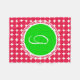 Red dots in close quarters create a secondary pattern of white stars. A large green circle is surrounded by white lines, while a single white initial graces the centre.