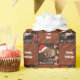 Add 2 photos (square 1:1 dimension) and text to this custom photo wrapping paper featuring Santa hats, candy canes, and gingerbread cookies.