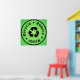 Reduce, Reuse, Recycle poster with black text and recycling symbol on a faded green background.