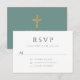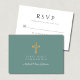 Green Religious Cross Boy First Communion RSVP Card