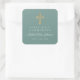 Green Religious Cross Boy First Communion Square Sticker