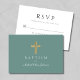 Green Religious Wood Cross Boy Baptism RSVP Card