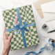 Green Retro 70s Groovy wavy checkered Pattern Wrapping Paper