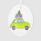 Green Retro Fiat 500 with Gifts Watercolor Ornament