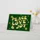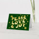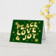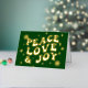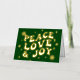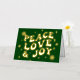 Green Retro Groovy Peace Love Joy Christmas Foil Holiday Card