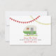 A wedding save the date featuring an illustration of a vintage inspired green trailer parked on green grass. Trailer has a window box full of colourful daisies and black eyed susans. Yellow and red bunting at top. Look for matching wedding invitations and more at Jill's Paperie.