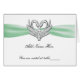 Green Ribbon Silver Swans Folded Table Place Card