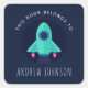 Green Rocket Spaceship Space Theme Boys Bookplate Square Sticker