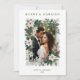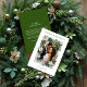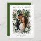 Green Romantic Christmas Botanical Frame Holiday Cards with Photo and Green Background for First Christmas Married.