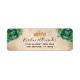 Create your own elegant return address labels fit for a royal princess using a simple DIY template that's easy to add a personalized name and details onto. The unique floral art by Raphaela Wilson spotlights a beautiful emerald green roses accented in a vintage yellow gold, sparkle butterfly glitter confetti, queen crown / tiara, and an old vintage rustic parchment paper texture. While the chic typography couples a black script calligraphy and a modern font, feel free to alter the fonts to your liking. Should you customize this botanical fairytale design further, you will see options to select from emerald roses accented in a light silver instead of yellow champagne gold! Whether you're making plans for a vintage royal wedding, green and gold quinceanera, fairy tale princess sweet 16 birthday party, floral bridal shower, or baby shower for a girl, these green watercolor return address labels may add that beauty and luxurious touch you're looking for on white invitation envelopes no to mention on every day stationery. You can reword these labels to serve as party favor guest monogram thank you or save the date stickers. Category: custom green wedding return address labels with roses / butterflies; personalized floral template return address labels and gold crown stickers for envelopes. Gold and emerald green themed party colors: dark green, jade, emerald forest, light brown, tan, yellow champagne gold (with options of faux metallic silver).