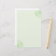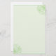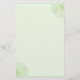 Stationary paper accompanied by two lovely blooming etched green roses blossoming in the top and bottom corners.