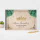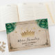 Create your own green and gold elegant guest books on an easy to use DIY template that can be personalised with your custom details, The vintage floral artwork by Raphaela Wilson features emerald green watercolor roses accented in faux metallic gold, along with sparkle glitter butterfly confetti, a beautiful princess crown / tiara, and a luxurious filigree border atop an old parchment paper texture. Should you opt to customise this royal fairytale design further, you will uncover additional selections in silver and green (instead of yellow gold), and svg graphics for the butterflies, crown and borders that you can click on and change to any colour. Located on the back of these green floral guestbooks, there is an svg pattern of roses as well that you can alter to a personalised colour. Whether you happen to be celebrating a green quinceañera, sweet 16 birthday party, rose wedding, bridal shower, or princess baby shower, these unique, watercolor guestbooks can be reworded to fit your event. Would you like to add a picture? The backside has plenty of space to insert a glamourous Mis Quince Anos photo in addition to other details. You can keep the script calligraphy and modern typography, or change the fonts to suit your style too - Enjoy! Category: Mexican / Spanish princess birthday party guestbooks; gold and green quinceanera guest books; elegant wedding guest books with emerald roses. Green and gold party theme colours: dark green, emerald, jade, light tan, gold, and black.
